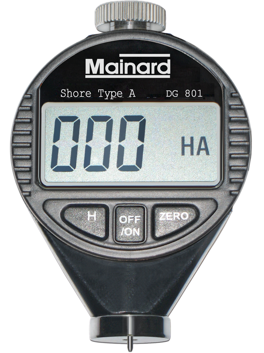 Durômetro Shore A para medir durezas de materiais como borrachas, elastômeros, plásticos, mangueiras, entre outros, conforme normas DIN 53505, ASTM D2240, ISO 868, ISO 7619-1, ISO 48-4, ISO 2439, ASTM D1415, ISO 4649, JIS K 6253 e BS 903-A26.