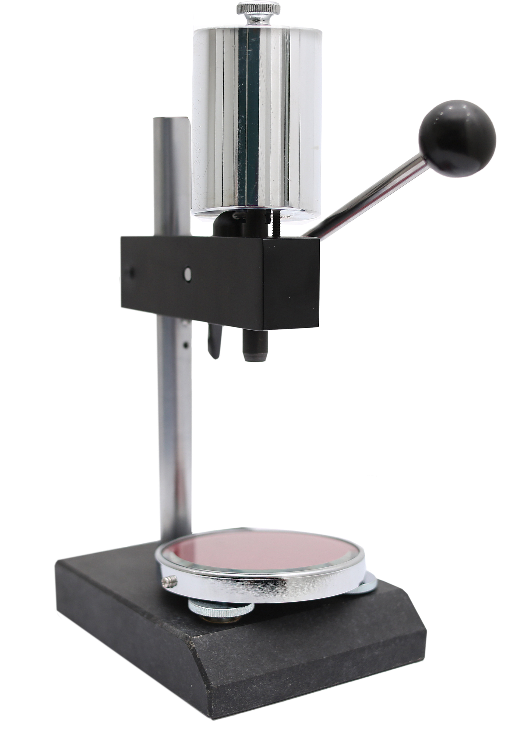Este suporte shore D possui uma torre de ajuste fino com 250 mm de altura, de fácil manuseio para fixar o durômetro na posição correta.